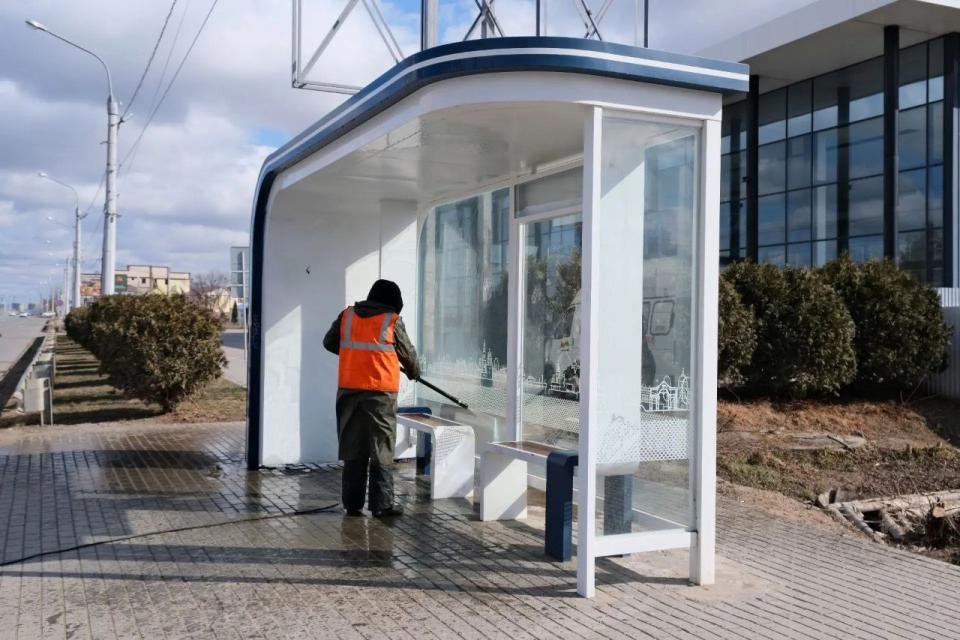 В Астрахани с установлением тёплой погоды коммунальные предприятия развернули работы по мойке объектов дорожного хозяйства.