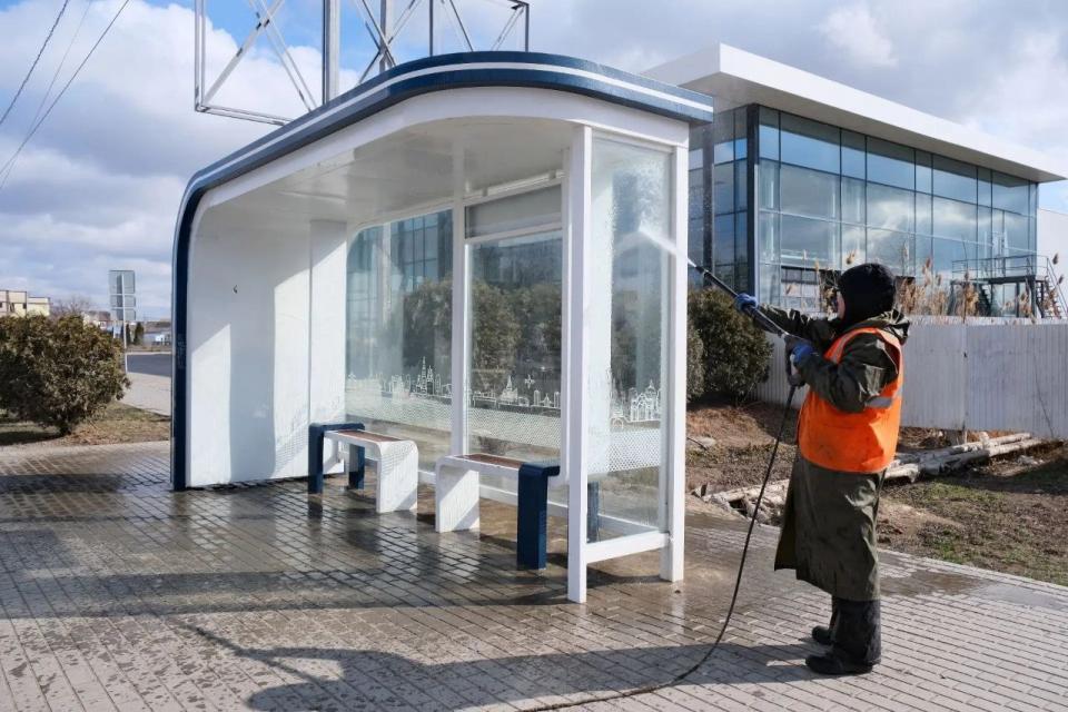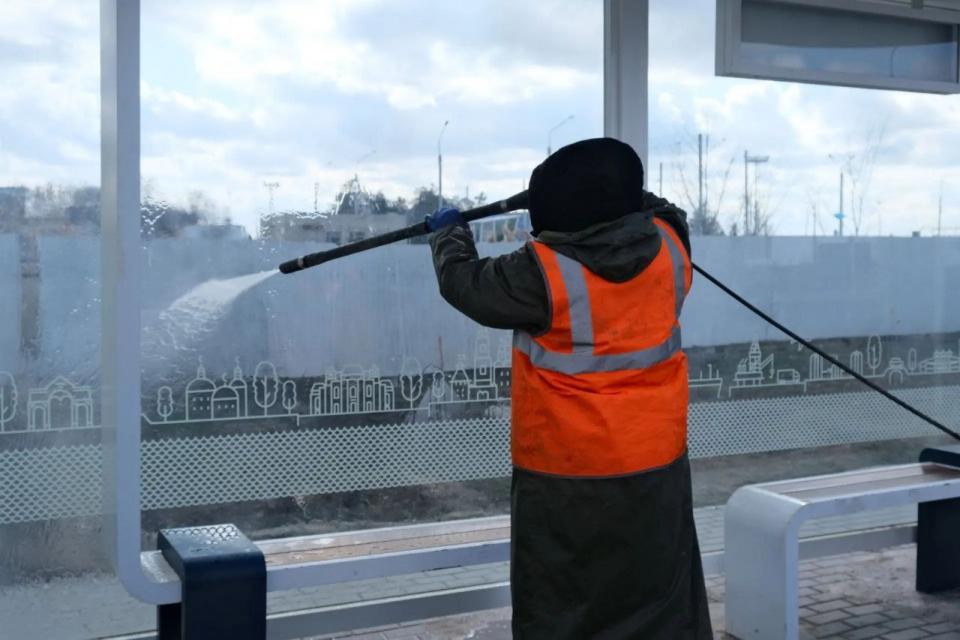 Параллельно на Аэропортовском шоссе работники предприятия «Чистый город» с помощью аппаратов высокого давления отмывали отбойники по направлению к улице Боевой. На противоположной стороне шоссе ограждения и шумовые экраны уже приведены в порядок. Также были вымыты остановочные павильоны вдоль этой магистрали.