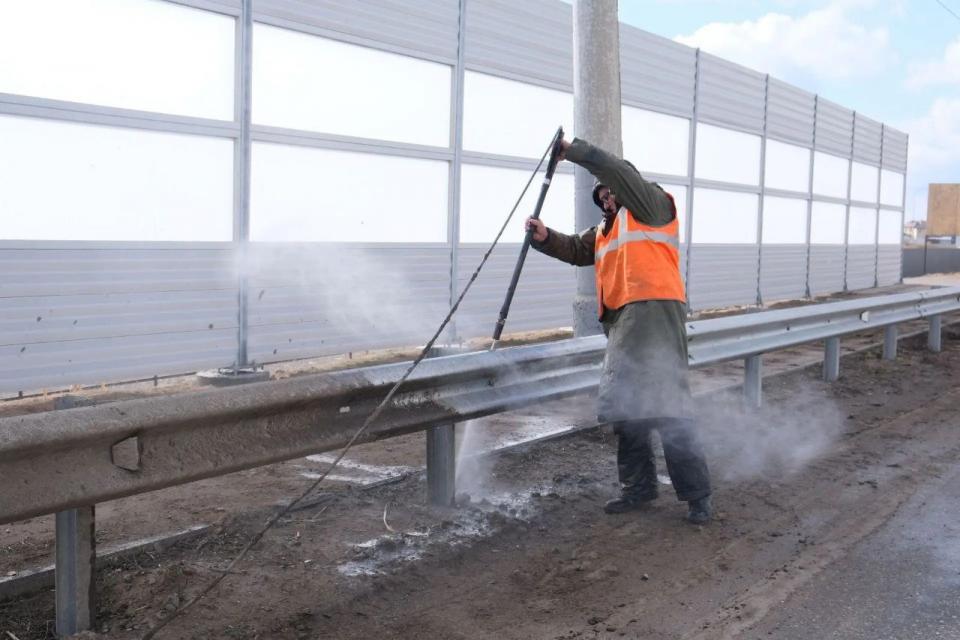 В Астрахани начали мыть дорожные ограждения и экраны