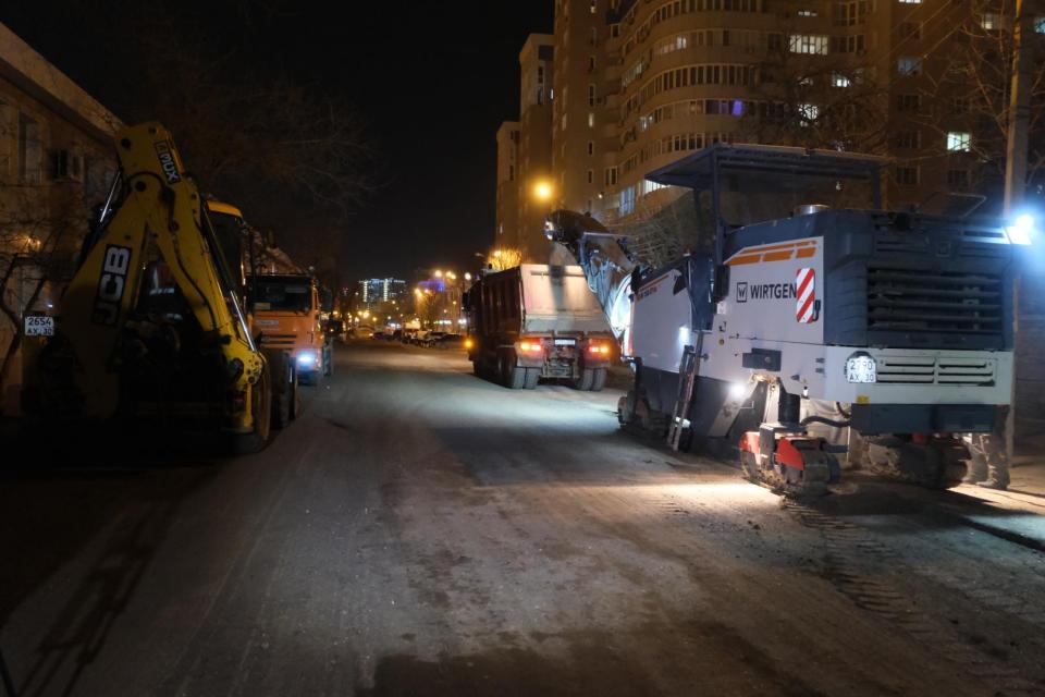 На текущей неделе специалисты отфрезеровали старое дорожное полотно, а в ночные часы уже начали укладывать выравнивающий слой асфальтобетона.